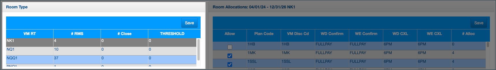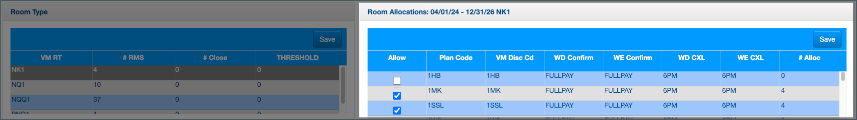 The "# Alloc" field allows the hotel to allocate a specified number of rooms per Rate Plan, with the total number of rooms allocated by default.