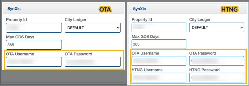 If the interface operates under OTA only, only one username and password will be required. If the interface operates under HTNG, an additional HTNG username and password will be required.
