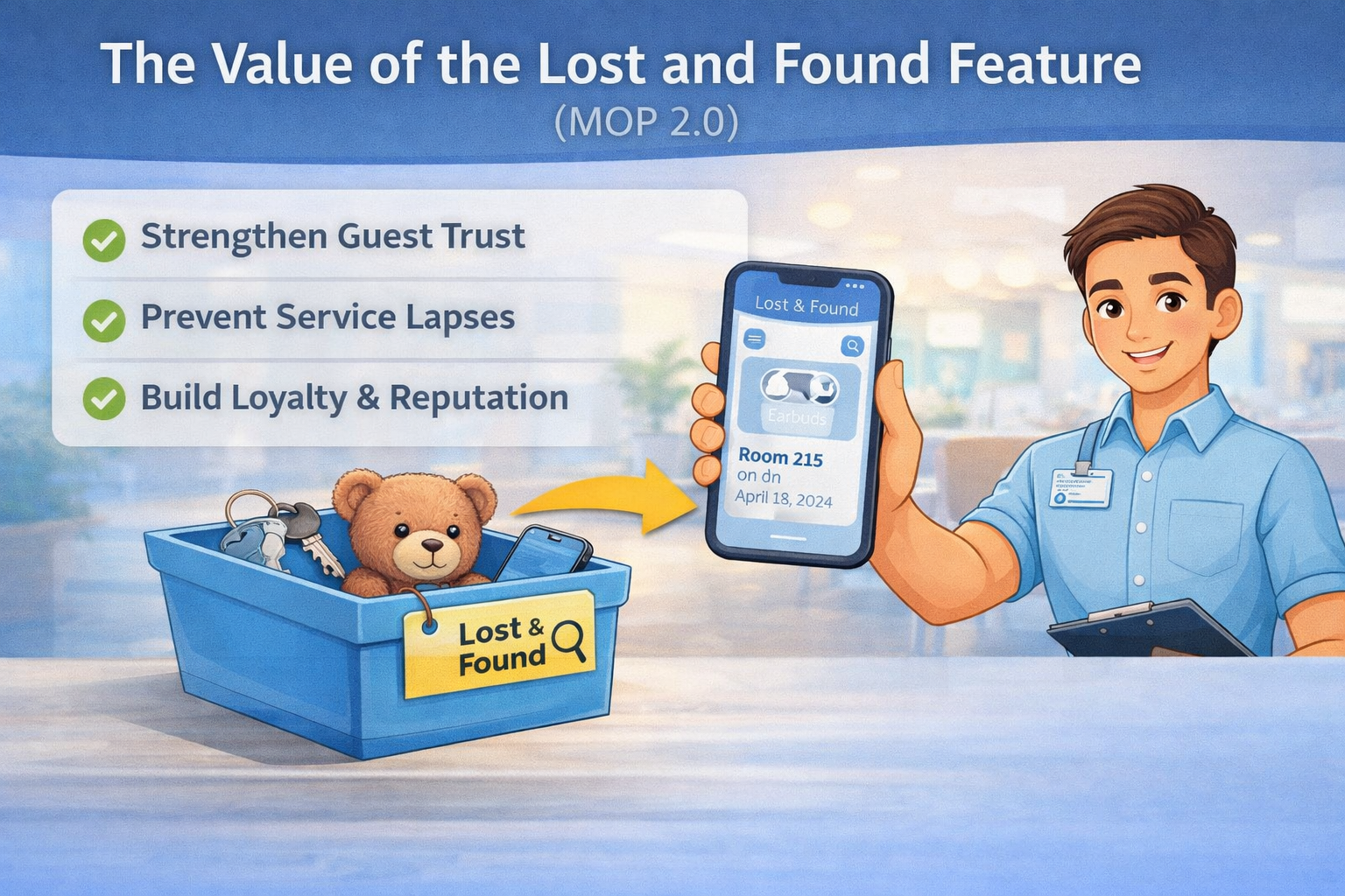 In hospitality, small gestures often create the biggest impact. The Lost and Found feature in MOP 2.0 is a powerful tool that helps teams deliver exceptional guest experiences while maintaining operational excellence. By enabling staff to log, track, and manage lost or found items efficiently, this feature ensures accountability, organization, and timely resolution—turning potential guest frustrations into positive, loyalty-building interactions.