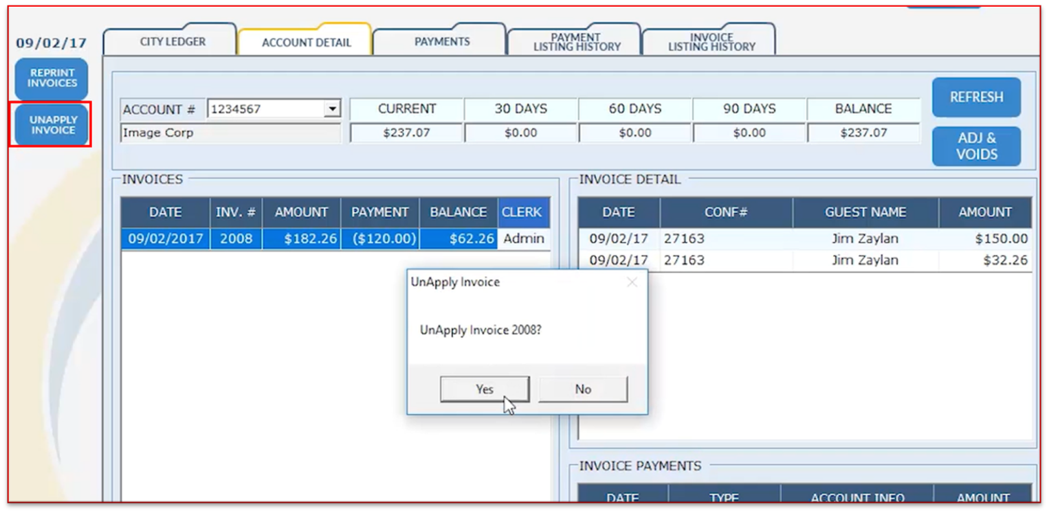 Unapply a City Ledger Invoice (Desktop) 🎥