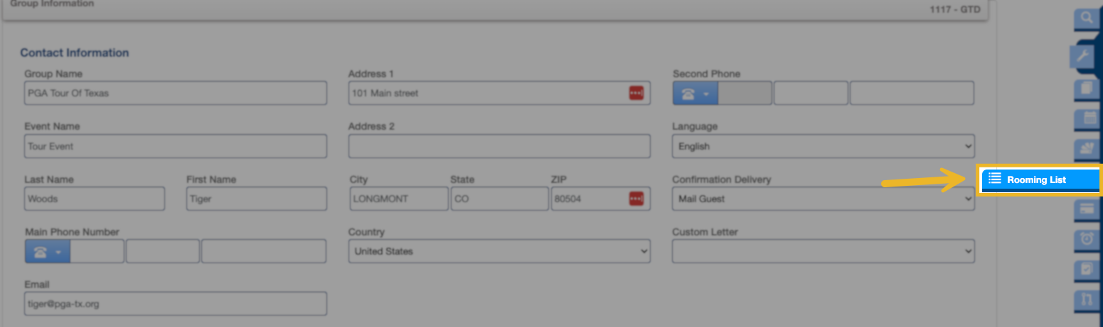? Watch Video The Group Rooming List provides a comprehensive overview of a group’s room assignments, guest names, confirmation numbers, and comments. From this screen, you can print a tidy, formatted version of that list to share with staff, ...