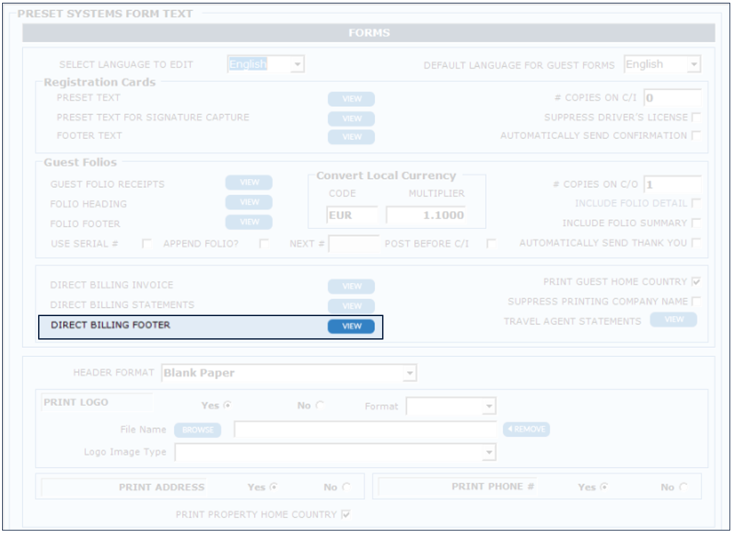 1. In the middle left side, click on "View" next to "Direct Billing Footer".