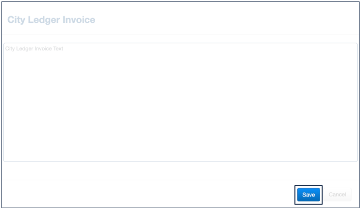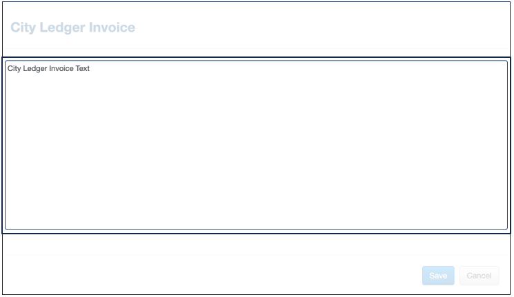 The City Ledger Direct Billing Invoice text is the content displayed beneath the invoice details on the City Ledger Invoice, as illustrated below.