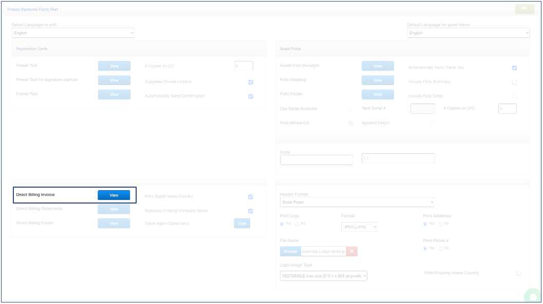 The City Ledger Direct Billing Footer Text displays at the bottom of a City Ledger or Travel Agent form, as shown below. Path: Management > Property Settings > Forms To update/customize this text, follow the next steps. 1. On the bottom left side, ...