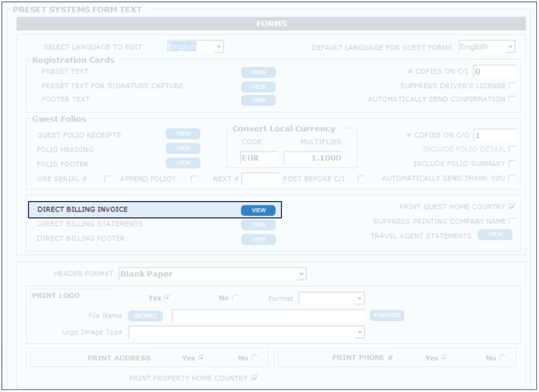 The City Ledger Direct Billing Footer Text is showing at the bottom of a City Ledger or Travel Agent form, as shown below. Path: Management > Setup > Property > Forms To update/customize this text, follow the next steps. 1. In the middle left side, ...
