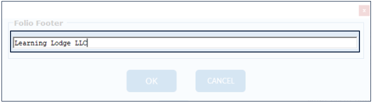 The Folio Footer is the phrase that is showing at the bottom of the folio, as shown below. The footer does not include the "Signature" showing at the bottom. This field is hard codded and cannot be removed.