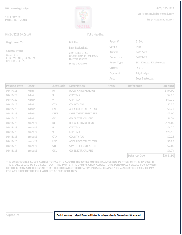Update/Customize Guest Folio Receipts (Desktop)