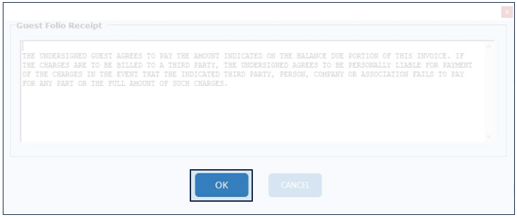 The Guest Folio Receipt is the text that is showing below the detailed stay charges, as shown below.