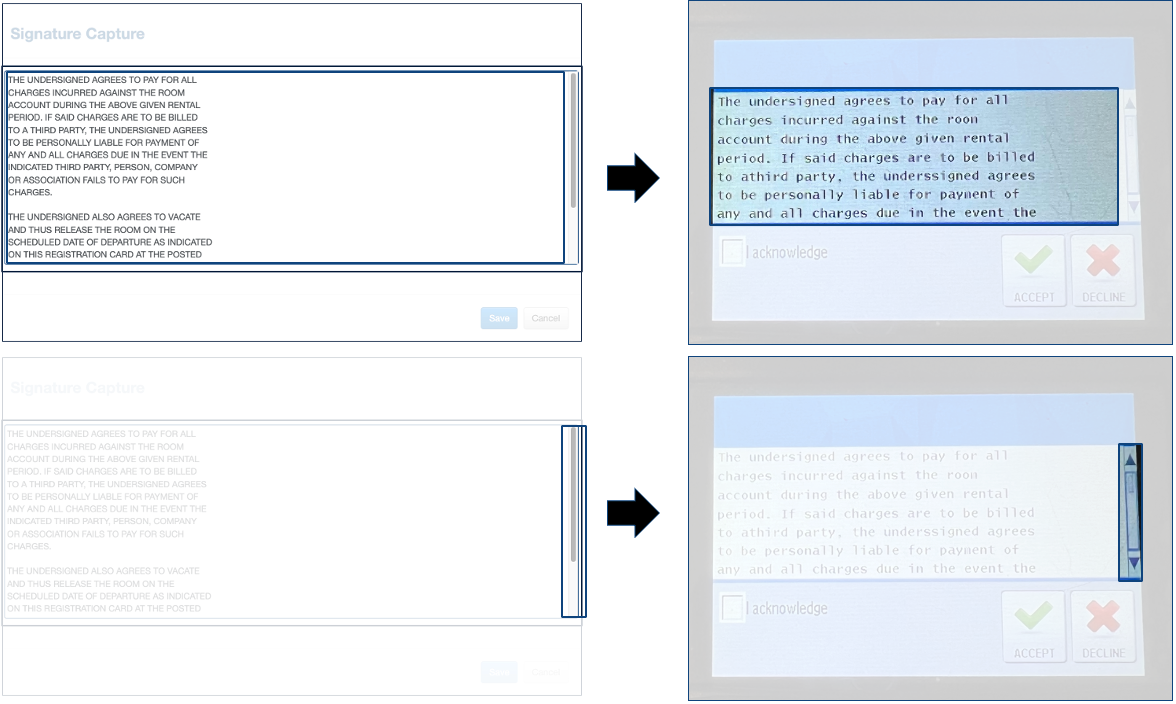 5. The version displayed on the pinpad/tablet will mirror what you saved in the settings above, appearing as a single screen. Depending on the length of the text, the client will have the ability to scroll to read the entire content.