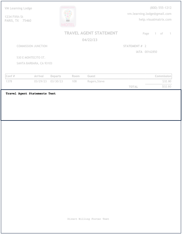 The Travel Agent text is the text that is showing below the commissons detailed in the Statement, as shown below.