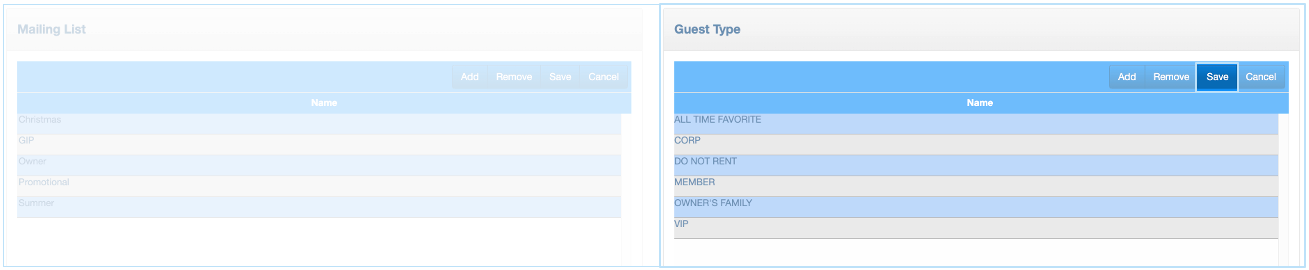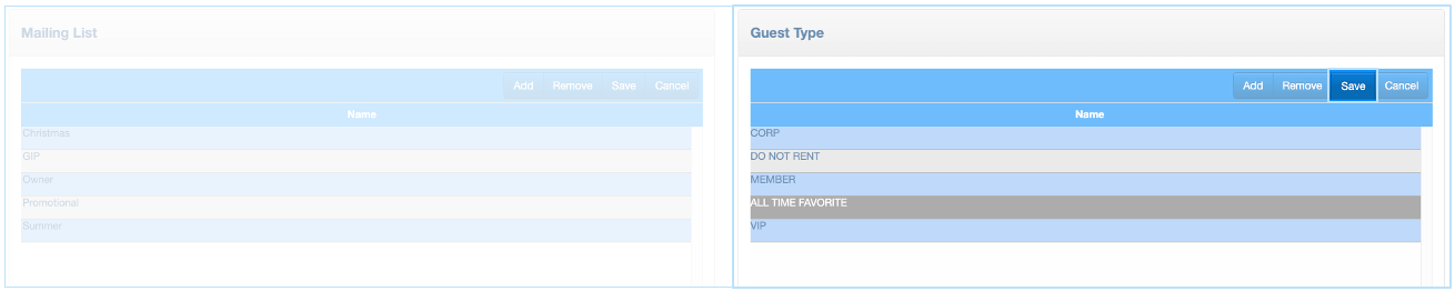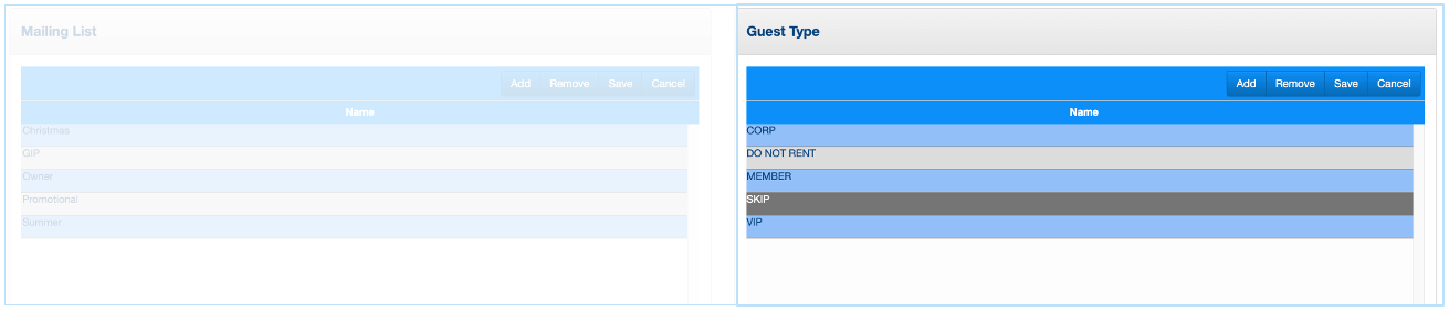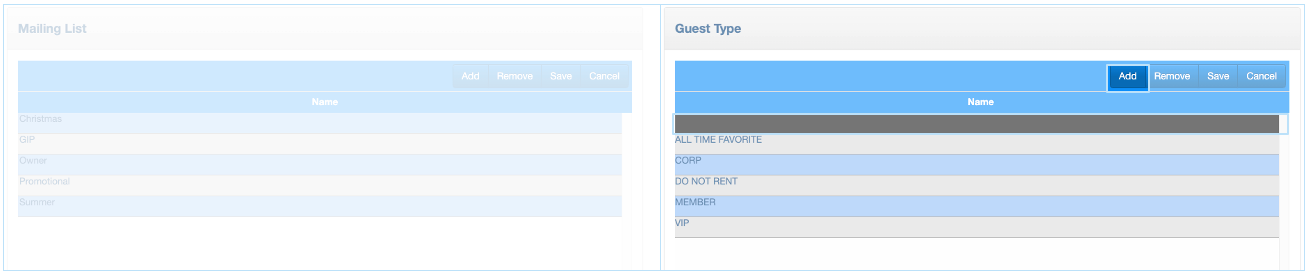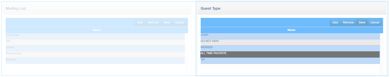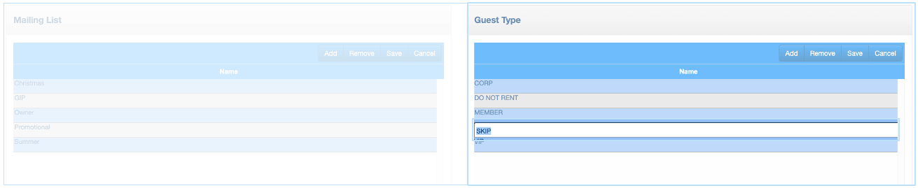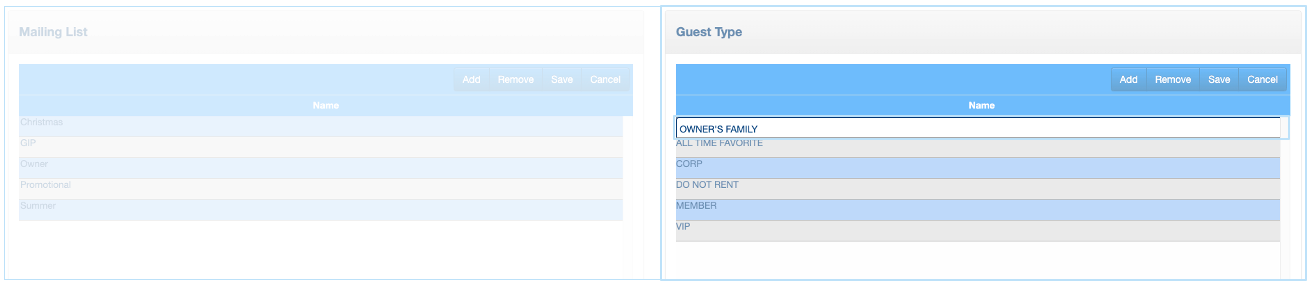 A Guest Type is a status to apply to profile like "VIP", "Member", "Corporate" or "Do Not Rent".