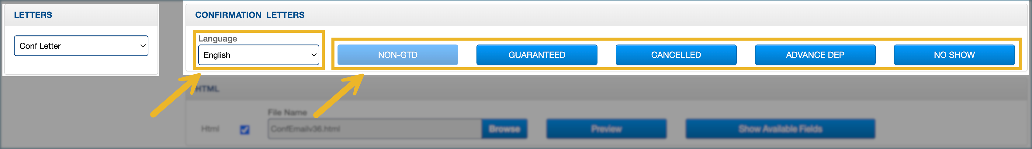 3. If using Confirmation or Custom Letters, select the Language and the Letter Type you want to upload.