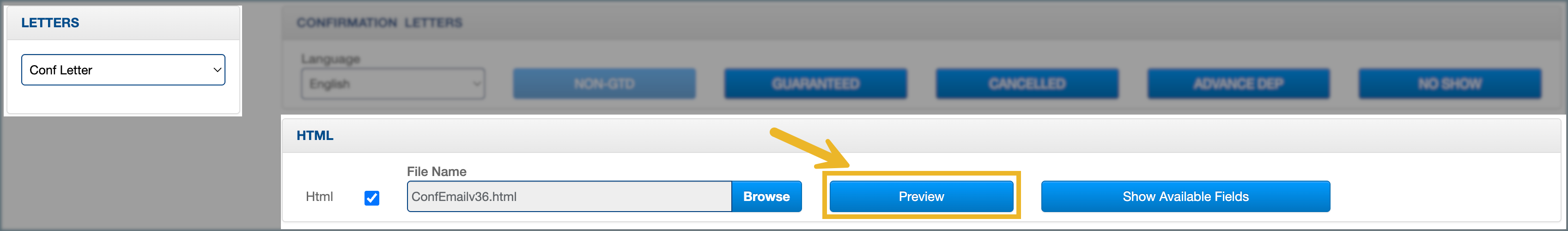 To display guest and reservation details (such as name, dates, or confirmation number), you must use field tags in your HTML template. See HTML Letter Field Tags (Cloud) for the full list of available tags.