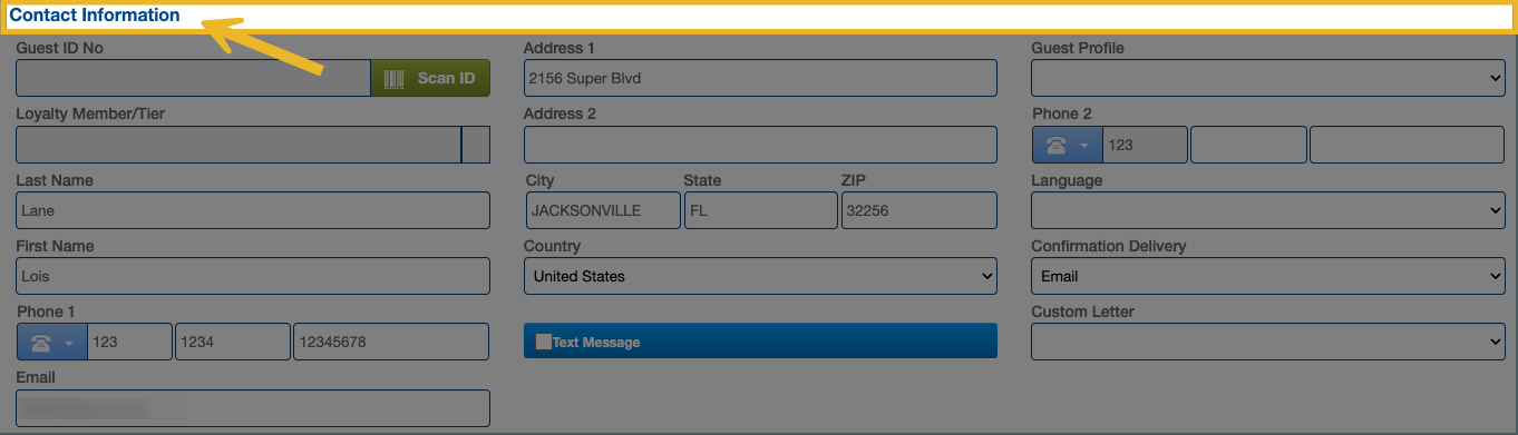 1. Open the Reservation: Navigate to the guest’s reservation and look at the Contact Information section.