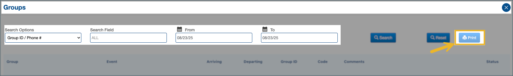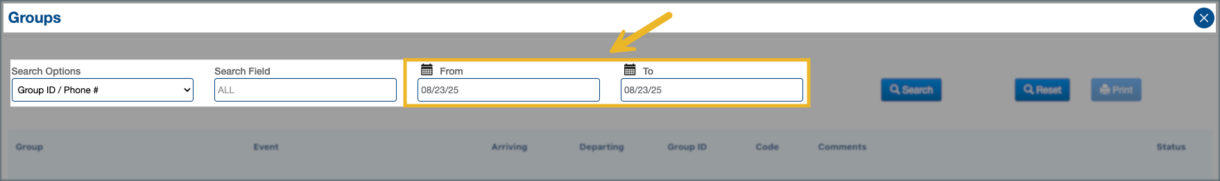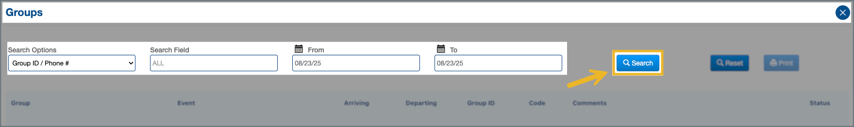 When managing group blocks or tracking group contacts, using the group’s phone number as a search key can save time and help you quickly find the correct group reservation—even if you don’t remember the group name or confirmation number.