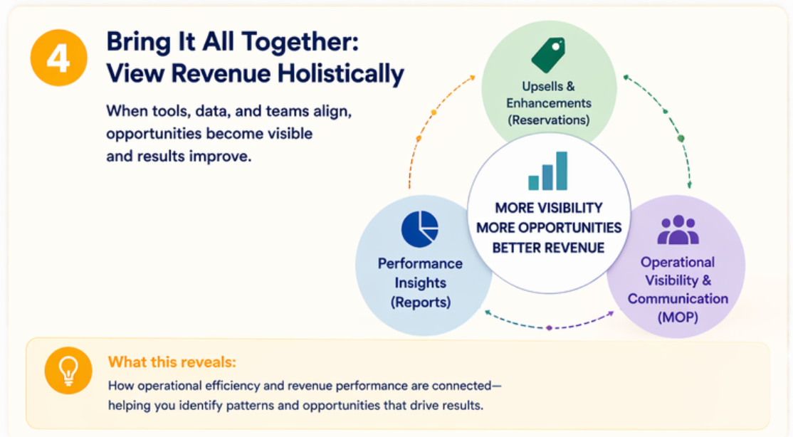 Each of these areas—upsells, reporting, and inventory visibility—contributes to a broader understanding of property performance.