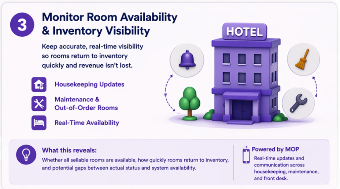 - Front desk staff can act on accurate, up-to-date room availability