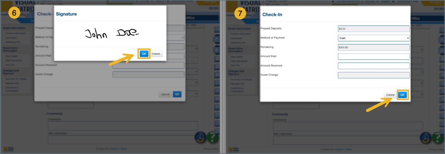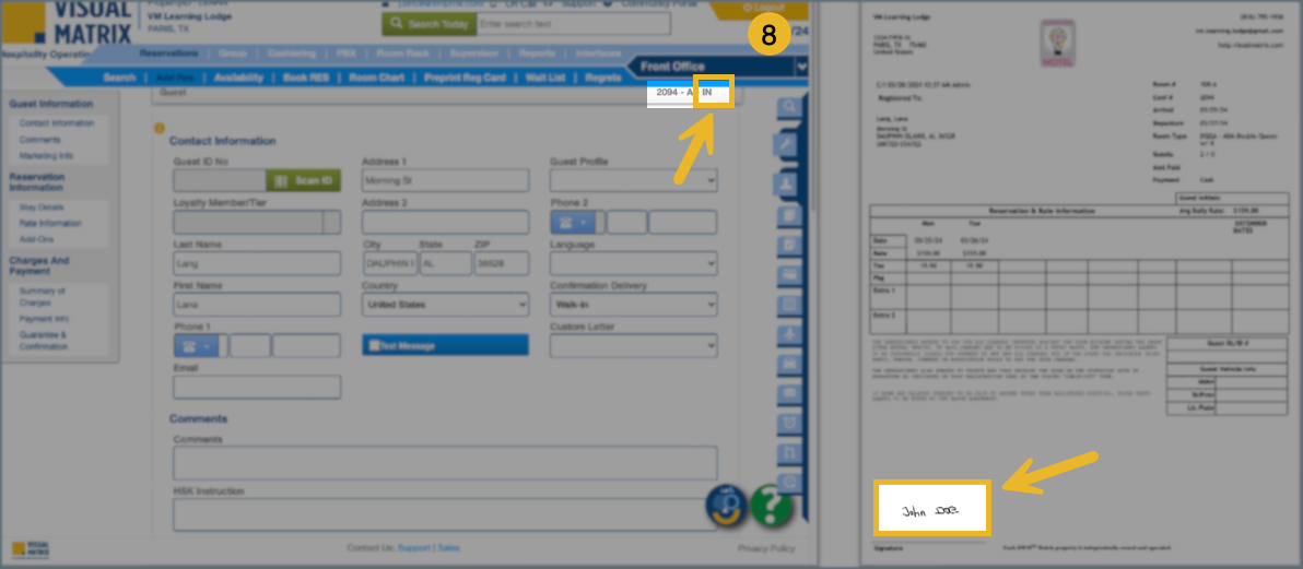 8. Check-in is now complete. The guest’s signature will be visible on the Registration Card only; it will not appear on the folio or other documents.