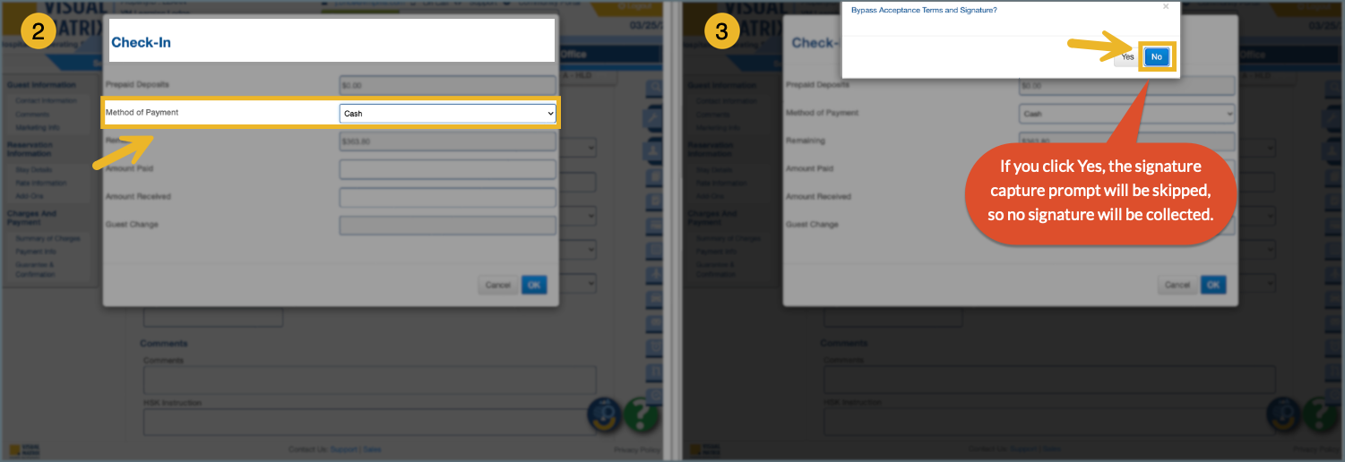 2. On the front desk, begin the check-in process. When prompted, select the guest’s method of payment.