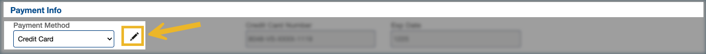 2. Open Credit Card Details: Click the pencil icon next to Payment Method to open the Credit Card – Save Info window.