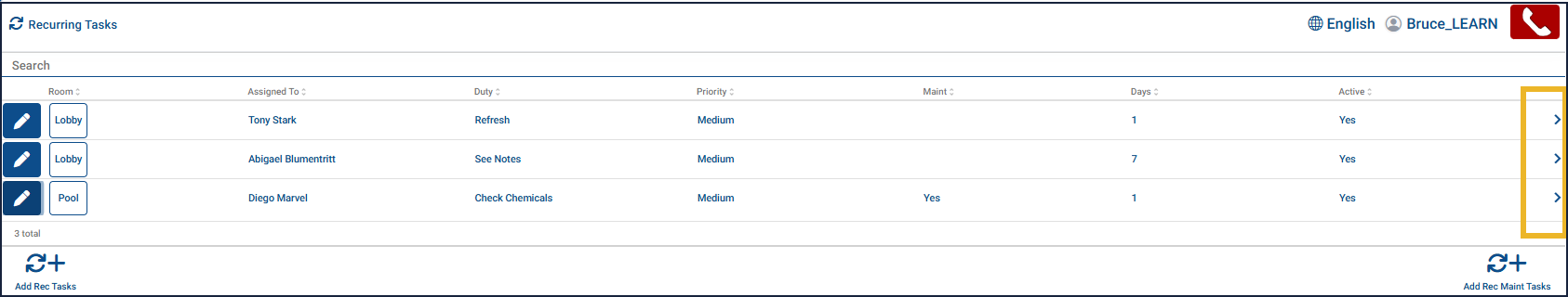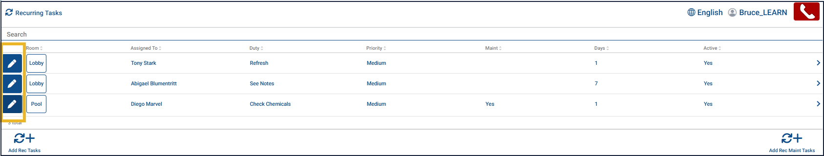 This article explains how to view and review all recurring tasks in MOP, including how to access task details and edit existing recurring tasks. Recurring housekeeping tasks are routine duties performed regularly to maintain cleanliness, organization, and overall property upkeep.