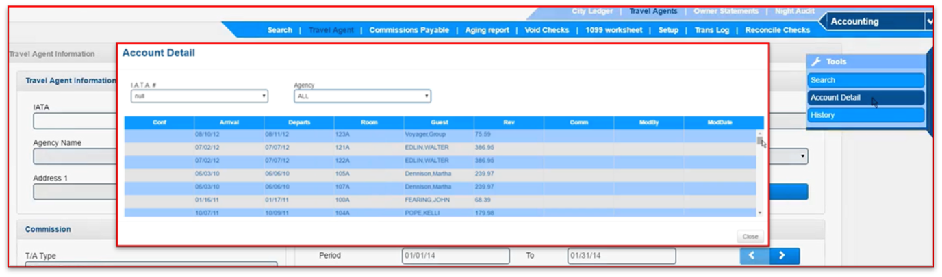 Path: Accounting > Travel Agents > Travel Agents > Account Detail