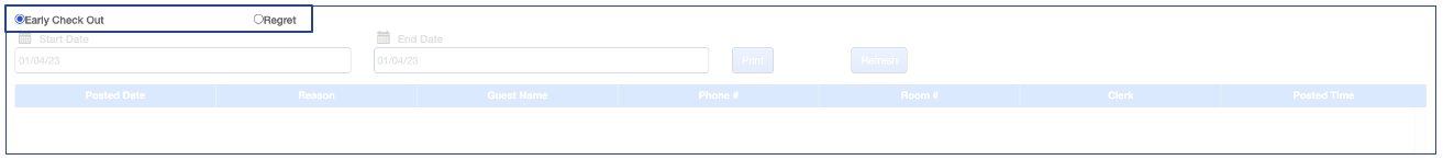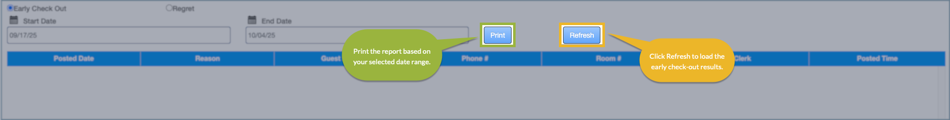 1. Select the Early Check-Out option to focus the report on guests who departed before their scheduled date.