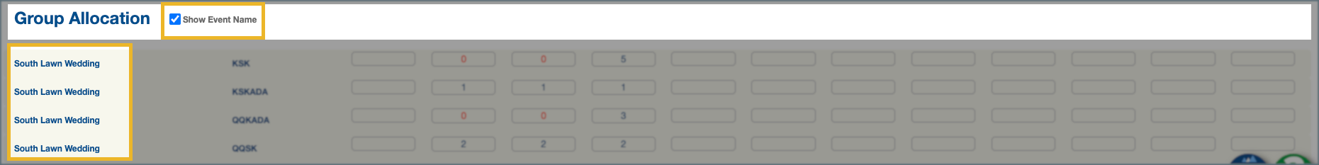 3. If multiple events exist under the same group name, use the Show Event Name checkbox to display event names instead of the group name to disambiguate.