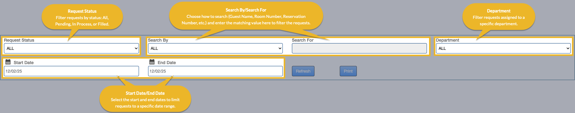 - Is the missing request linked to a guest, room, or department not included in the filter set?