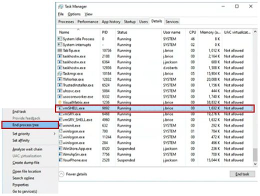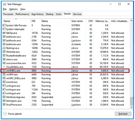 Go to the Details Tab. Go at the end and find the program vmSHELL.exe.