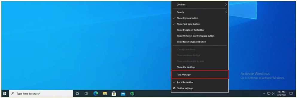 Do a right-click in the Taskbar and click on Task Manager.