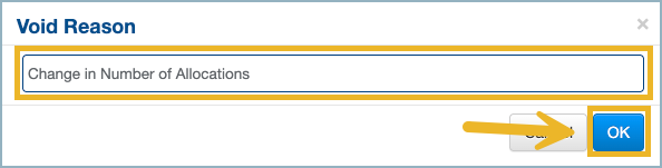 4. Enter a reason for voiding (e.g., duplicate, error). Click OK (or Confirm) to finalize the void.