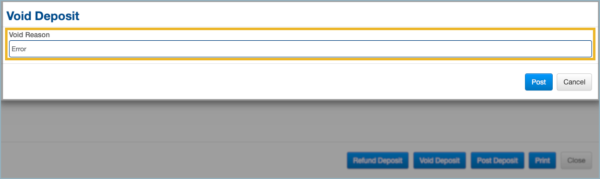 4. Provide a reason for voiding the deposit (for your records).