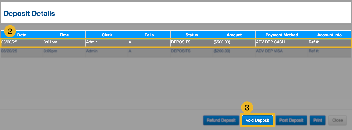 only before check-in. If, however, a deposit has already been transferred to the folio during check-in, you won’t be able to void it—instead, you’ll need to make an