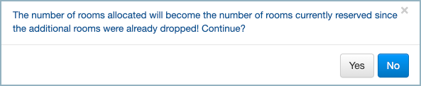 3. A message will appear explaining that any unpicked allocations will be dropped, leaving the group’s allocation total equal to its number of picked-up rooms. Click Yes to confirm.