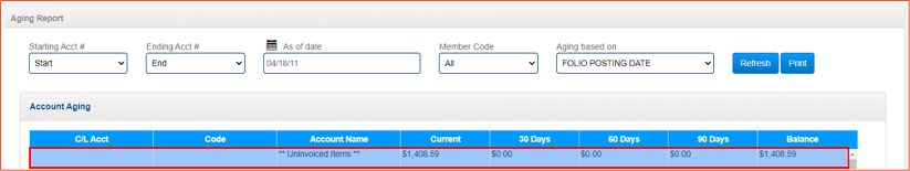 To see all the folios included in the uninvoiced Items amount, go to Print Invoices.