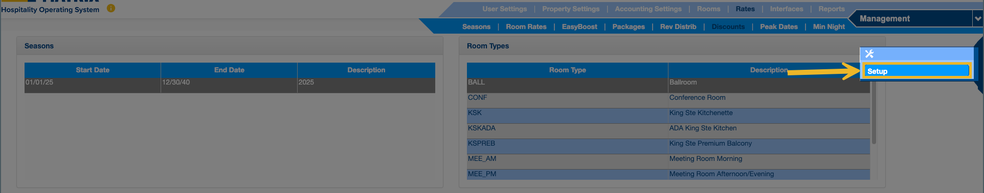Path: Management > Rates > Discounts > Setup