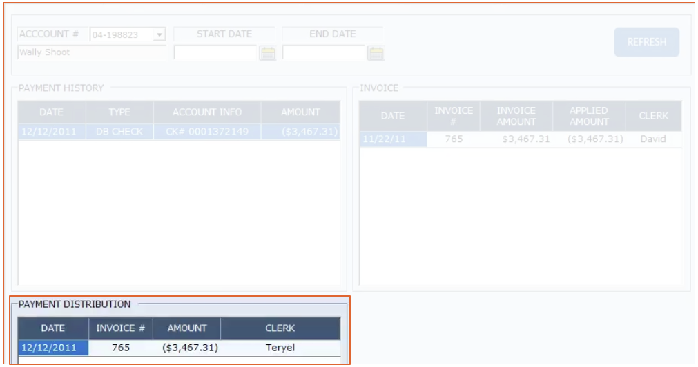 3. On the bottom left side, will display every invoice on which the selected payment was applied with the amount posted.