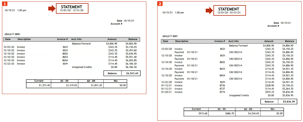 The following screenshots will show the same statement, both with the Exclude 0 Balance box checked, but both for different dates.