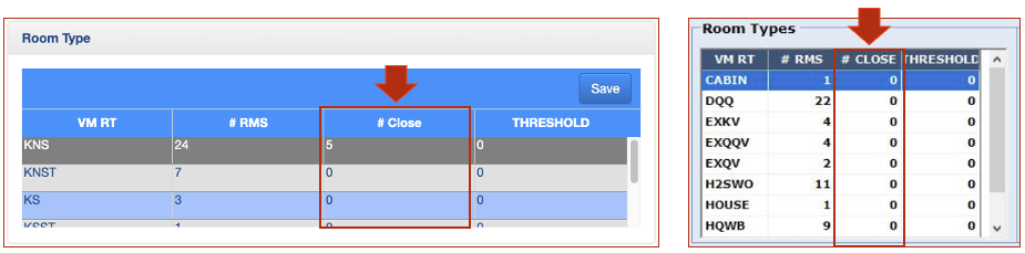 The "# Close" is the number of rooms left for a room type at which Visual Matrix will trigger a message to your Channel Manager to Close inventories online.