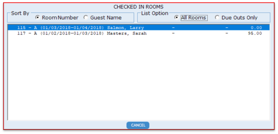3. On the right of the window, the rooms can be sorted to show All or only the due outs.