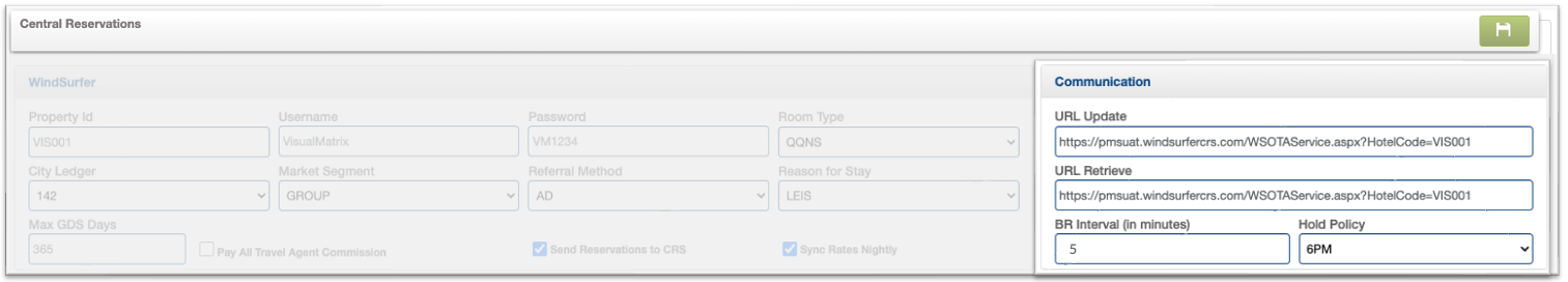 - BR interval (in minutes): The interval between each reservation retrieval request from Visual Matrix. This should be set to 5'.