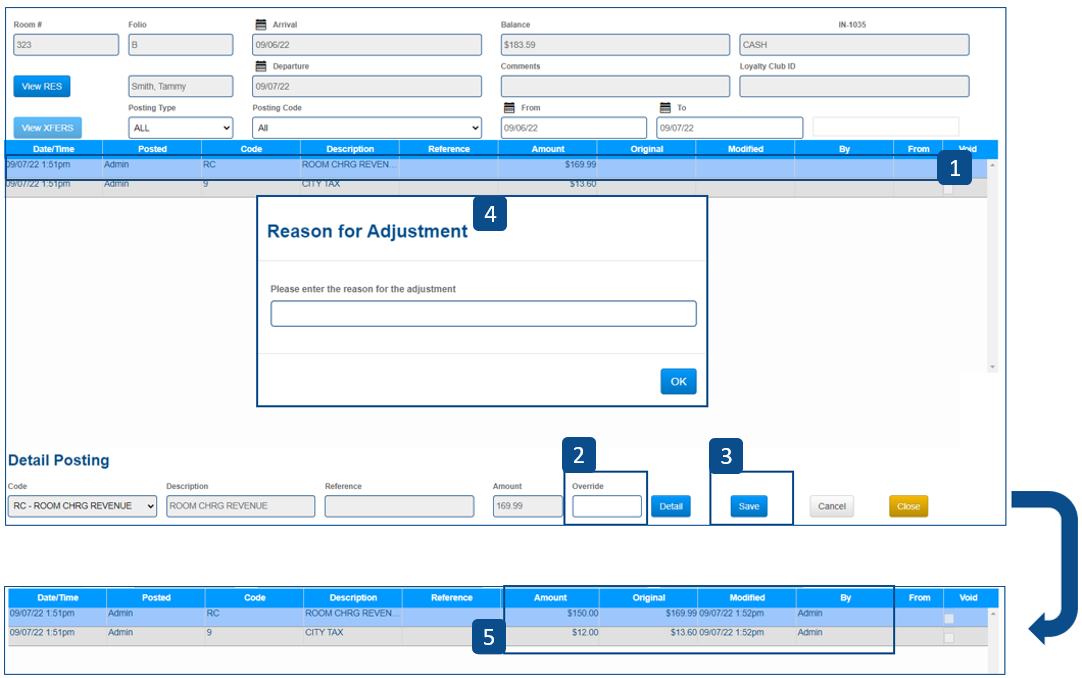 Si el cargo de habitación incluye un código de descuento, el cargo no podrá ser anulado. Tendrá que ser anulado y repostado a través de Detalle Posting.