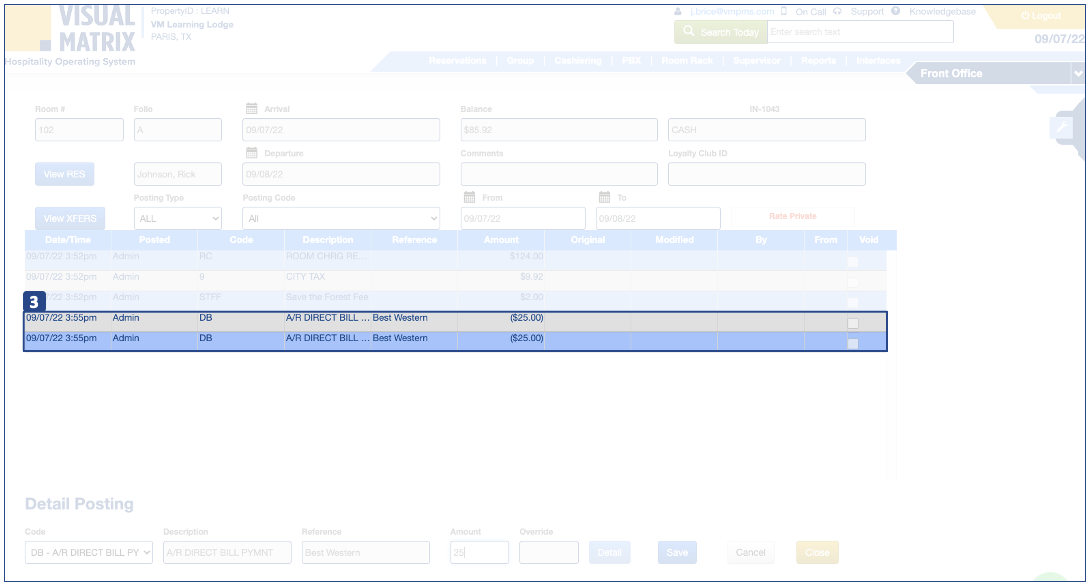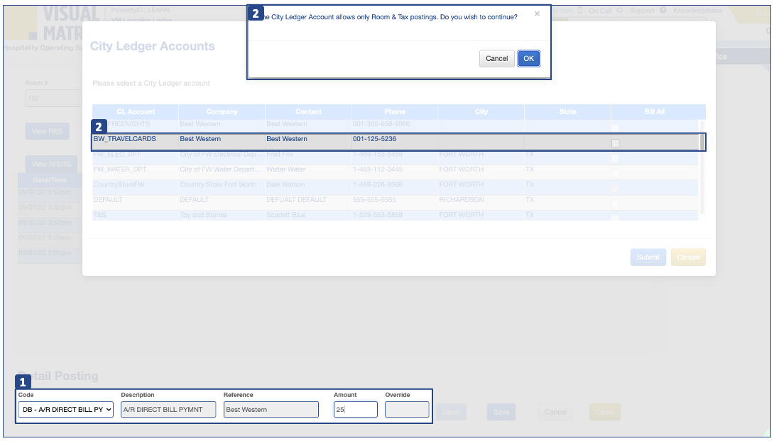 1. 1. 1. Desde detalles Publicación, publique el código contable DB (factura directa). 2. 2. 2. 2. La base de datos se publicará en la cuenta CL ya seleccionada como método de pago en la pantalla de reserva. 3. 3. 3. 3. Un cuadro de diálogo pedirá ...