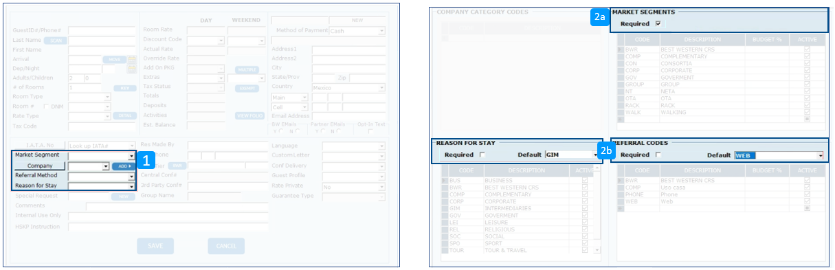 2b. Si el segmento de marketing no se comprobó según lo necesario en la configuración, todavía se puede elegir a partir del menú desplegable. De lo contrario, el segmento predeterminado será elegido cuando se guarde la reserva.
