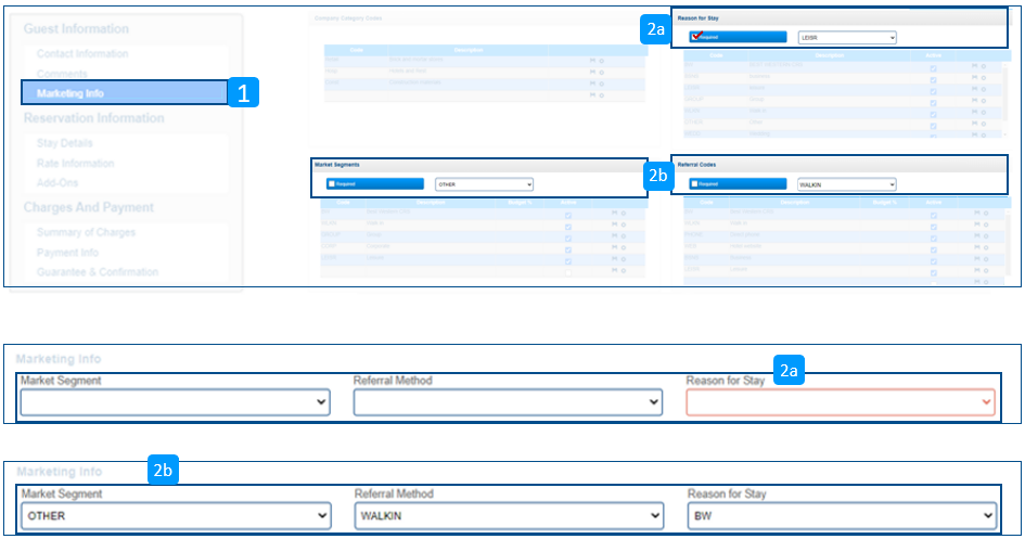 2b. Si el segmento de marketing no se comprobó según lo necesario en la configuración, todavía se puede elegir a partir del menú desplegable. Ode lo contrario, el segmento predeterminado será elegido cuando se guarde la reserva.