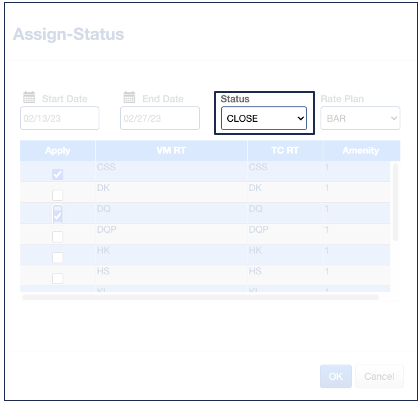 Para reabrir, siga el mismo proceso y elija "Abrir" para la misma fecha(s).