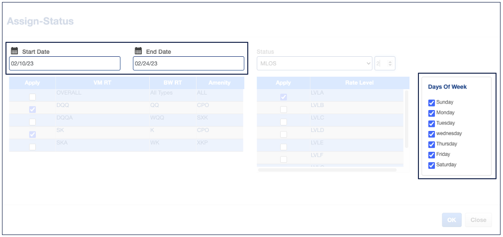 Para reabrir, siga el mismo proceso y elija "Abrir" para la misma fecha(s).