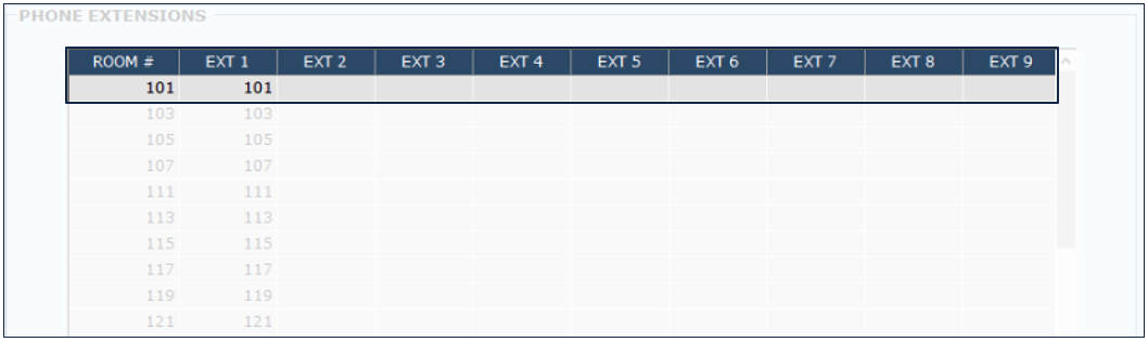 Las extensiones telefónicas permiten a los huéspedes y al personal del hotel estar conectados correctamente con cualquier llamada desde dentro o fuera del hotel. Esta sección da la posibilidad de configurar hasta 9 extensiones por habitación. La precisión en las extensiones también es importante para la contabilidad de llamadas. Los números de habitación deben configurarse antes de agregar extensiones.