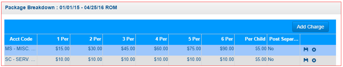 Acct Code será donde elija los códigos contables que haya configurado anteriormente. Si configura varios códigos, tendrá que introducir cada uno a la vez dentro del desglose del paquete.